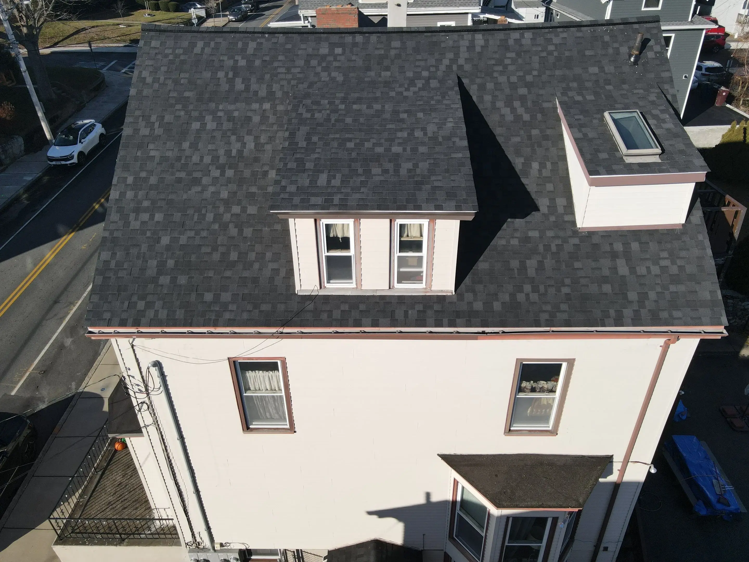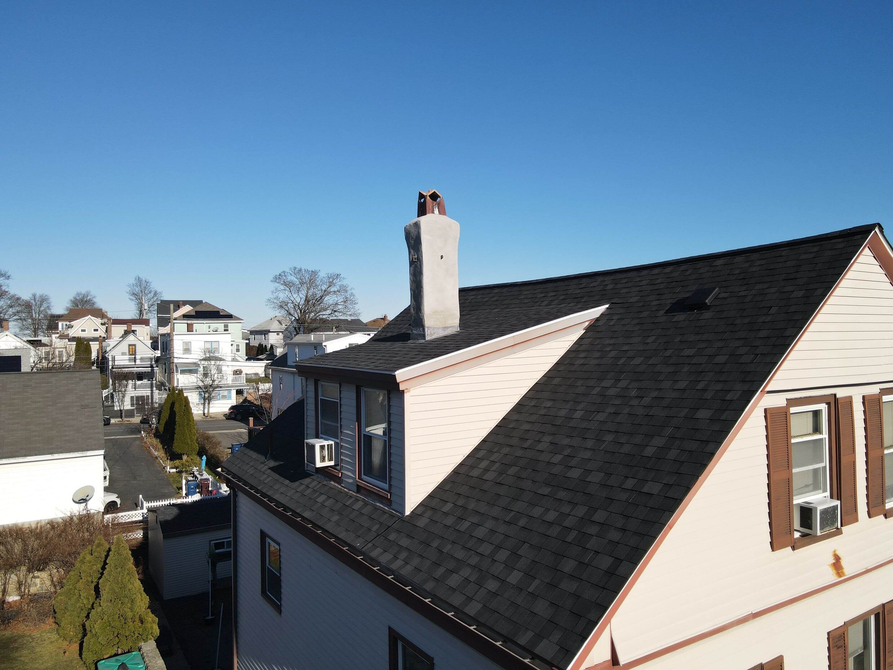 In the Boston area, leaks most frequently occur around flashing points, specifically chimneys, skylights, and pipe vents. The extreme freeze-thaw cycles compromise old sealant and cause lead/metal flashing to crack.